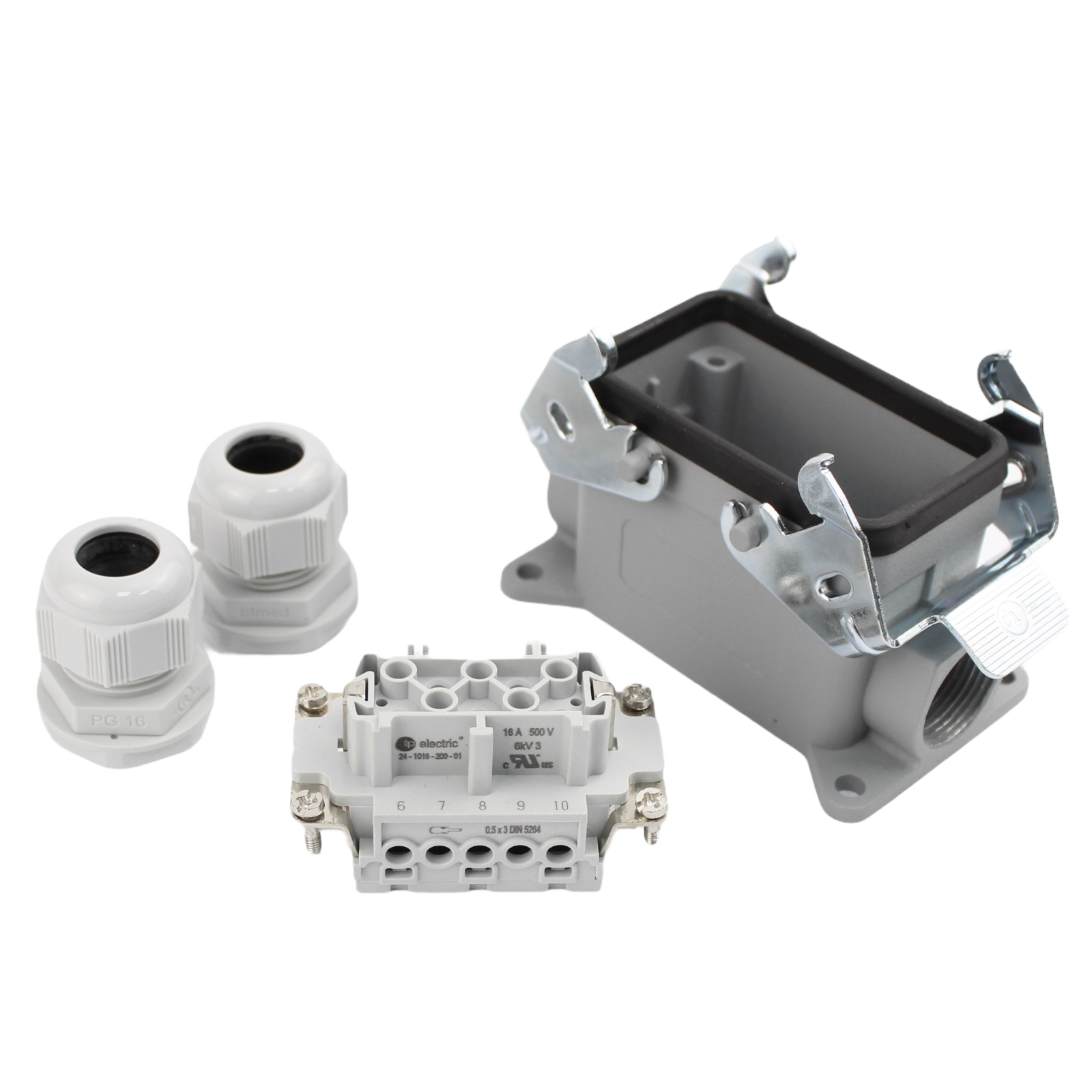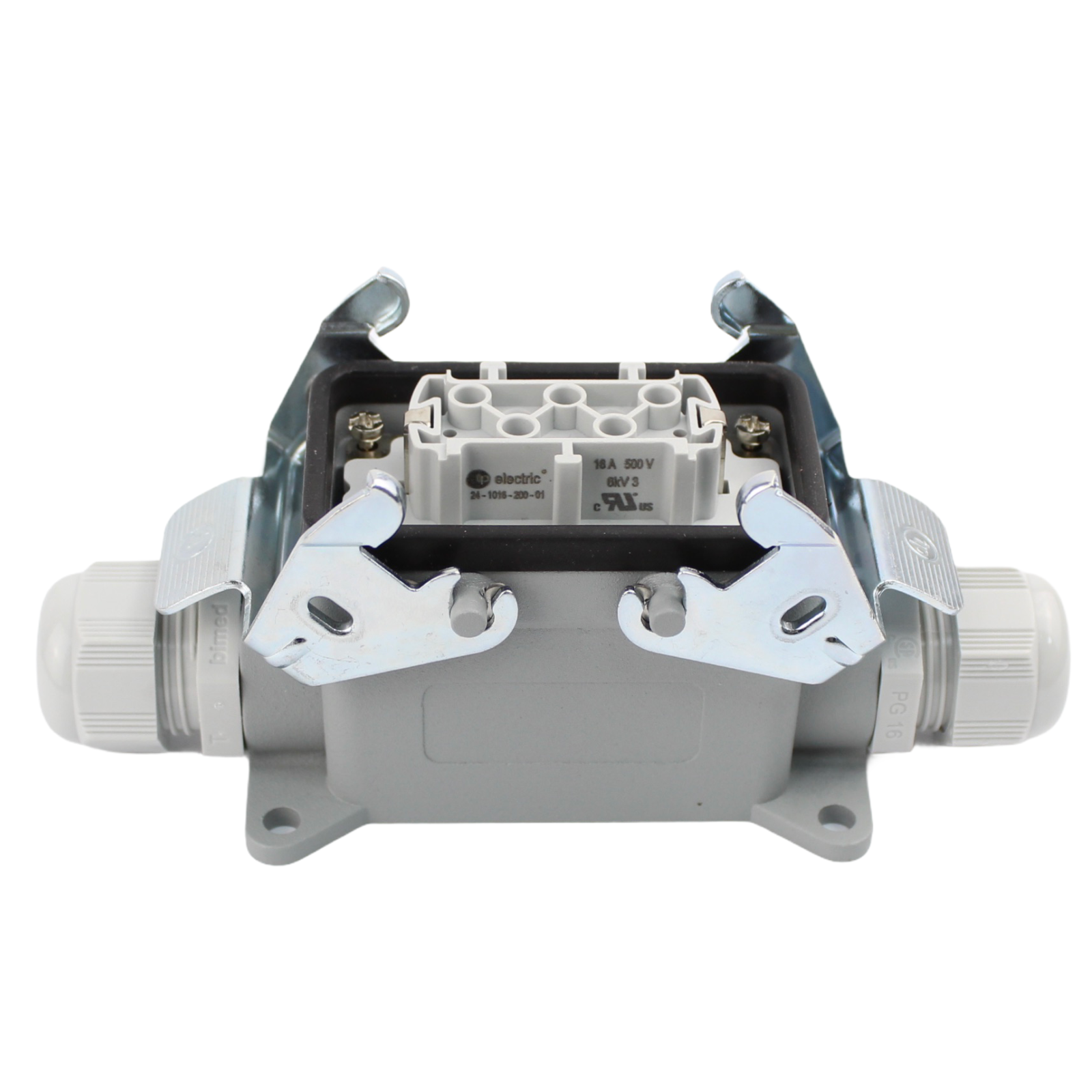 Industriesteckverbinder - Sockelgehäuse seitlicher Eingang + Buchse 10 Polig 16A - Metall - Kopie
