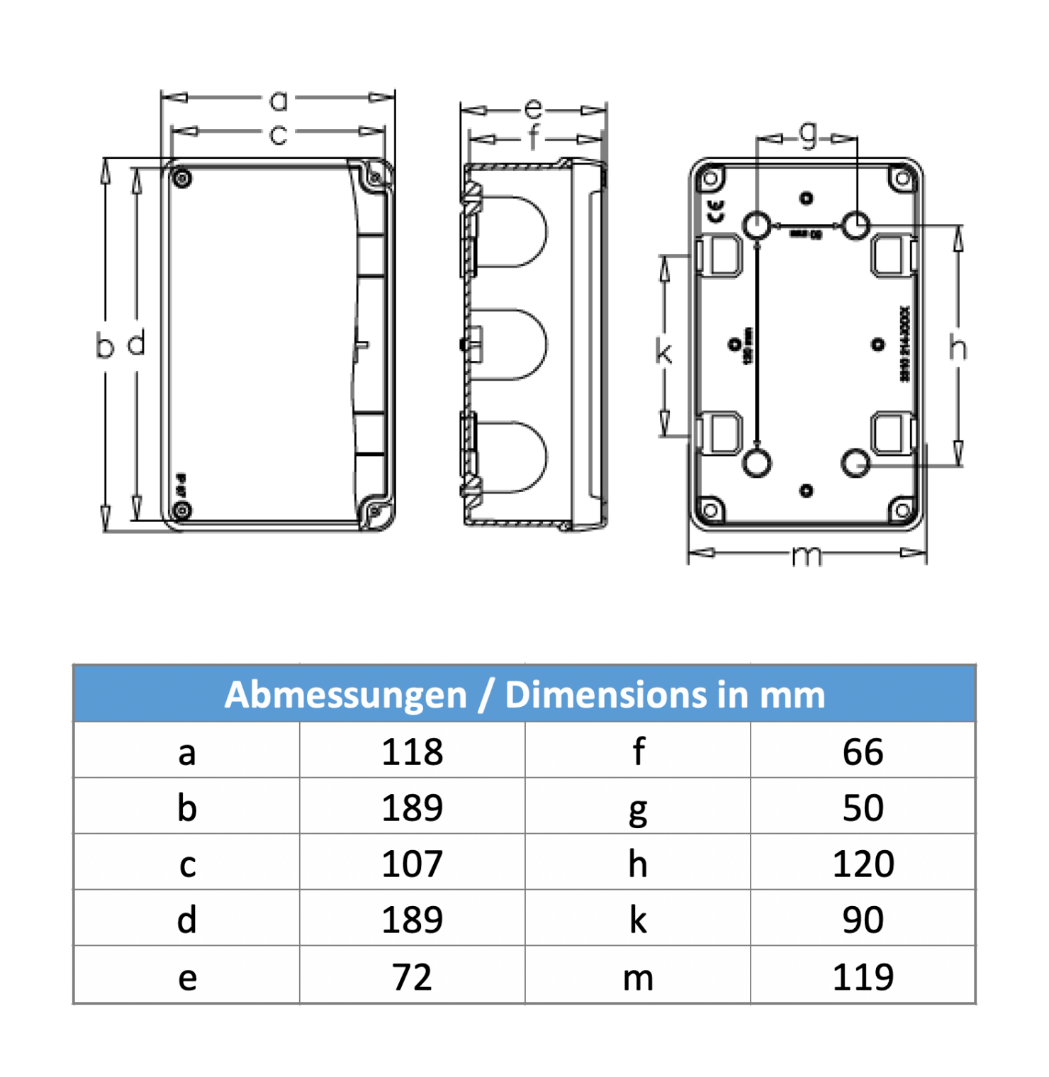 Installationsgehäuse IP67 (110x180x70mm) + Hutschiene