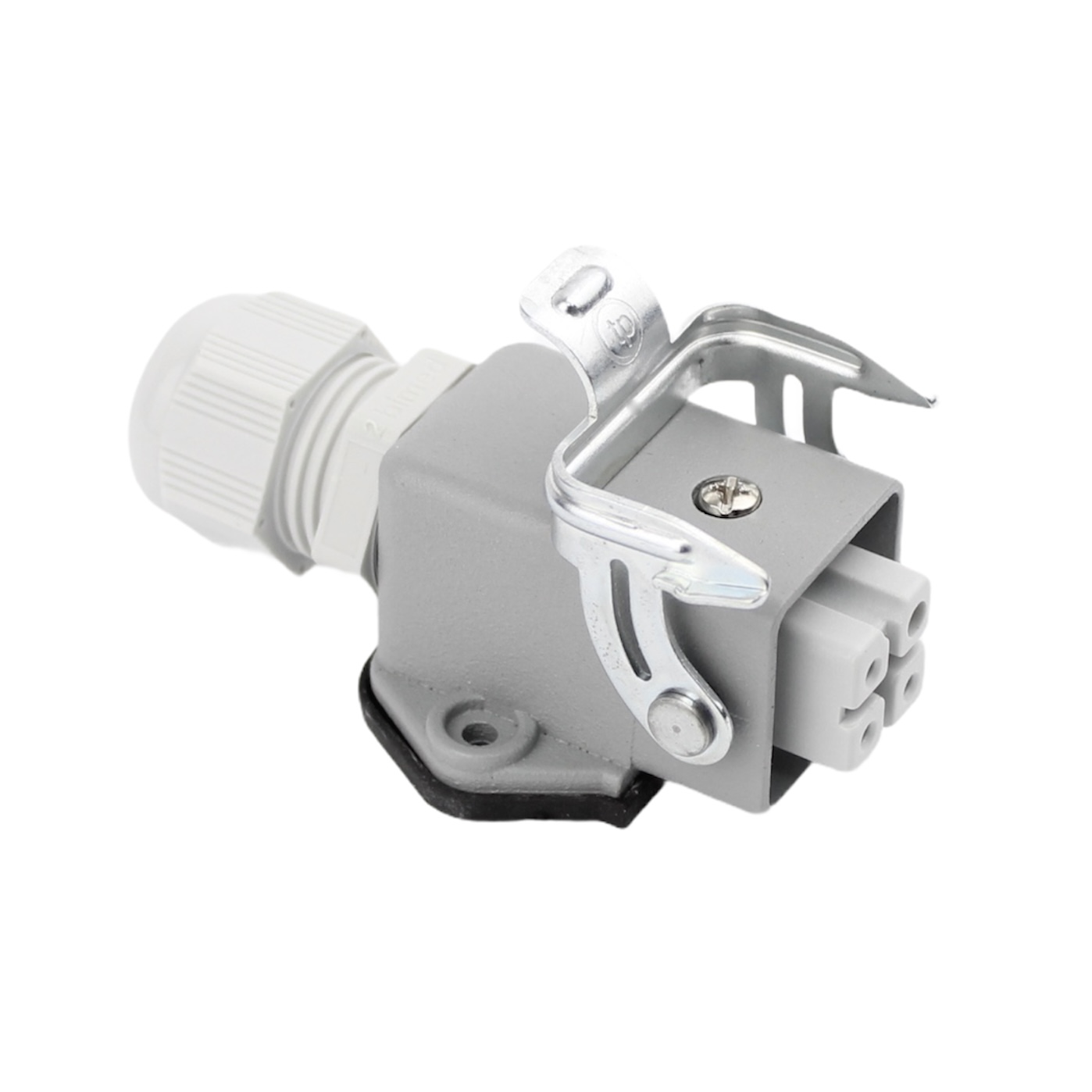 Mobile Preview: Industriesteckverbinder - Sockelgehäuse gewinkelt mit offenem Boden + Buchse 4 Polig 10A - Metall