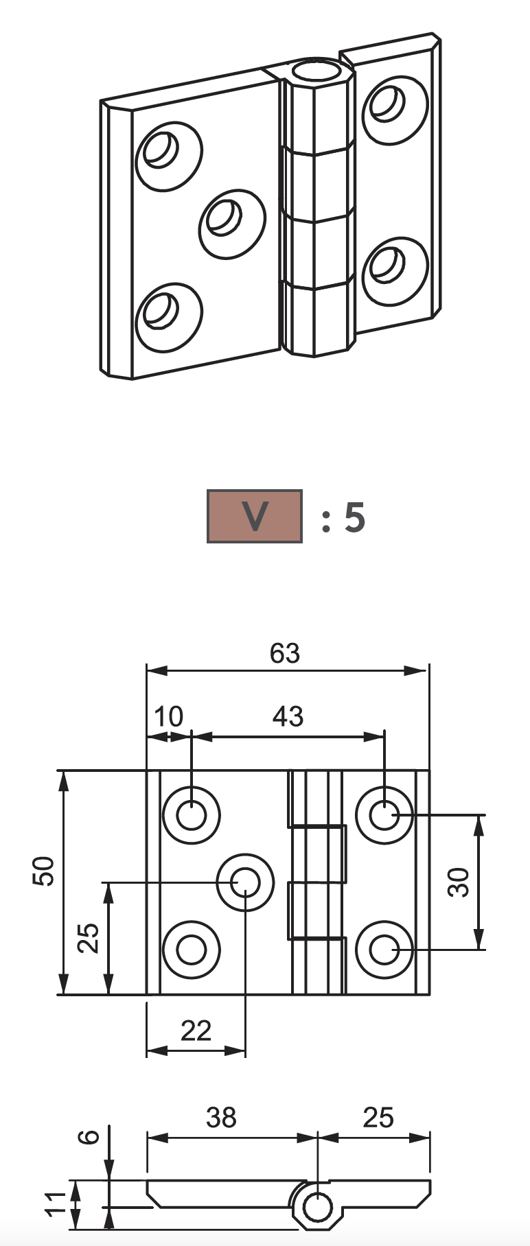 Scharnier (M 099) - 50x63mm - Metall