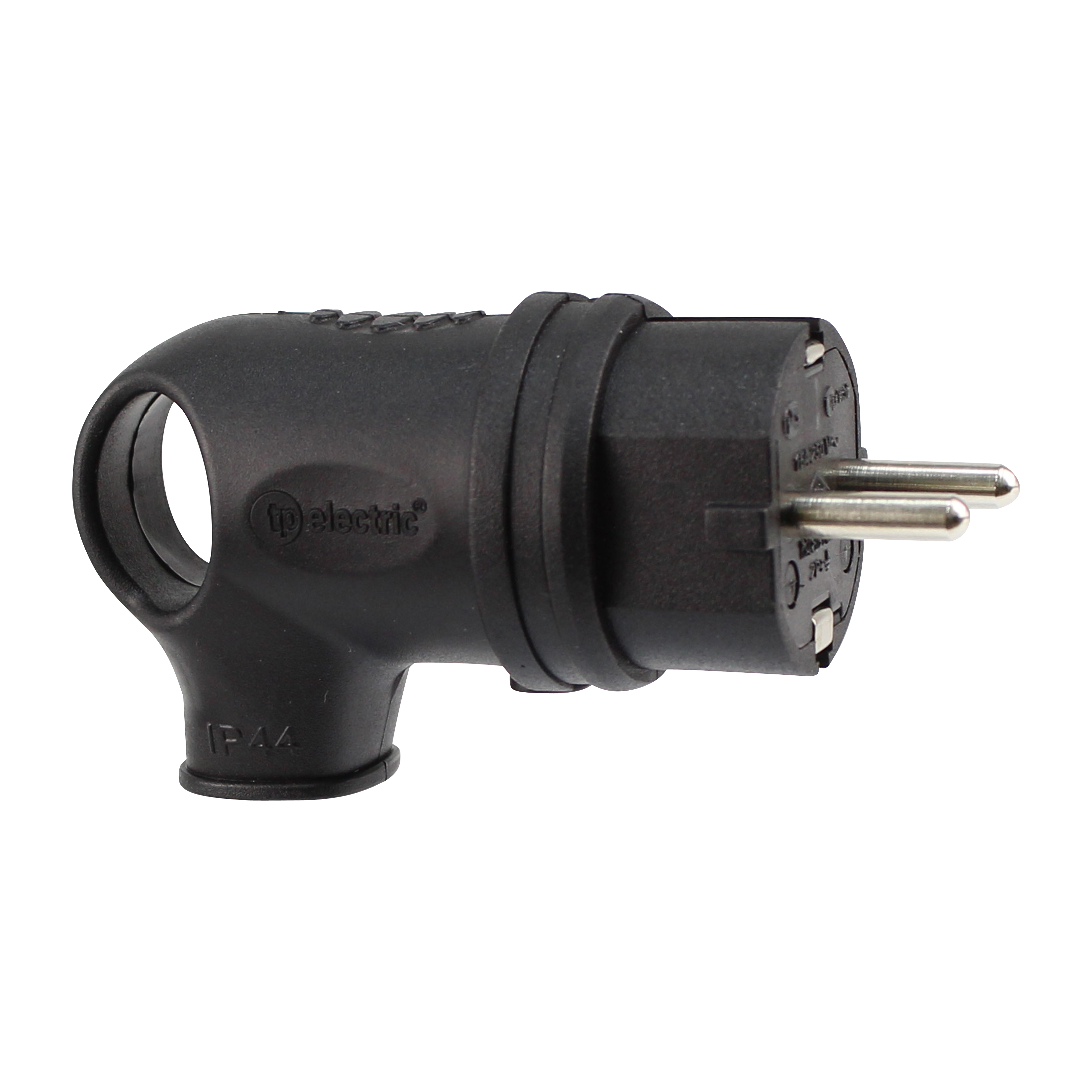 Schutzkontakt Gummistecker mit Griff IP44 (Schwarz)